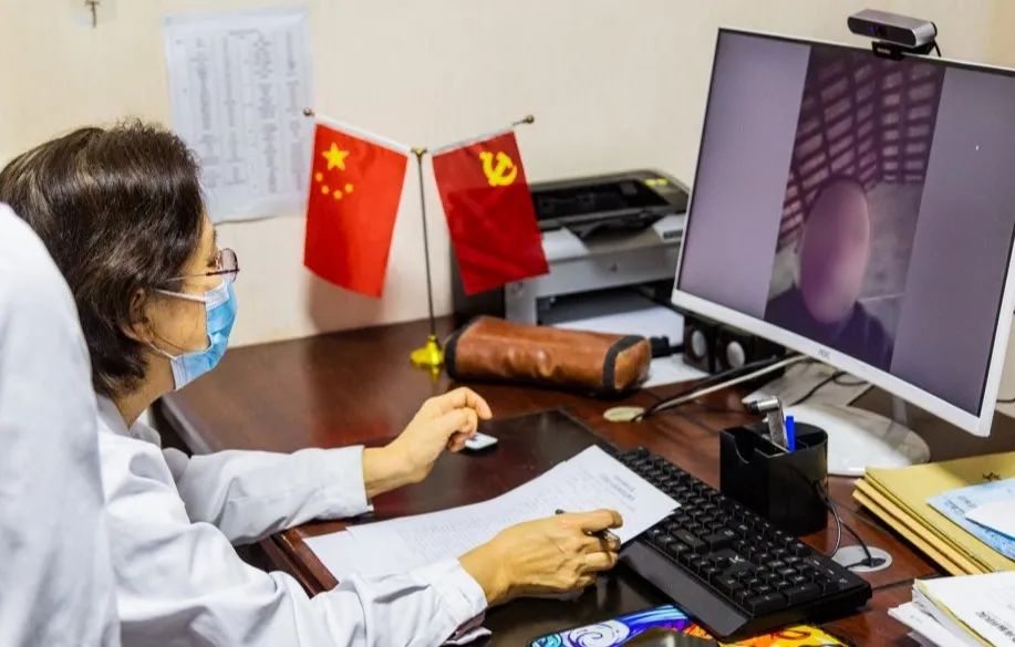 (于学芬主任通过5G远程会诊询问患者情况)