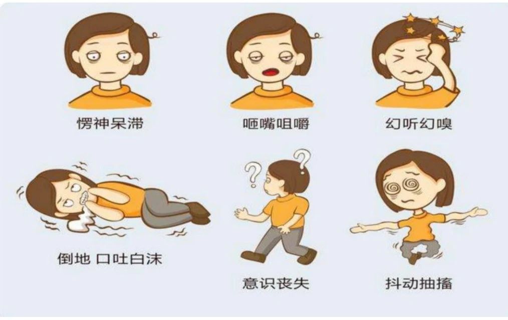 比如说犯病前感觉到腹部有股气往上涌,随后出现发楞,眼神呆滞,呼喊无反应,不自主的咂嘴、抓衣角,甚至可以无意识的到处行走。